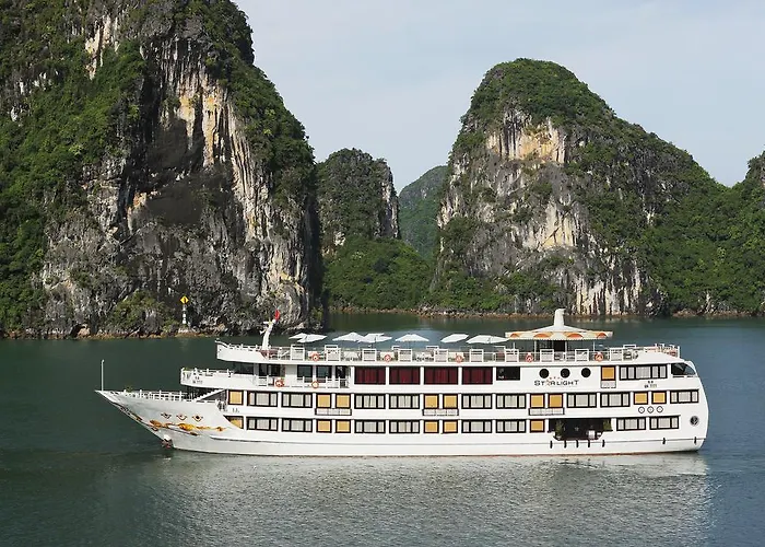 Отель Starlight Cruise с рестораном и камерой хранения багажа расположен в районе Hon Gai, в 1 км от Пагоды Лонг-Тьен и примерно в 2 км от пляжа Бай Чай. Из 62 номеров этого 5-звездочного отеля открывается вид на залив. Кроме того на территории есть джакузи и сауна.